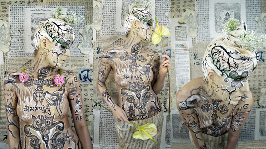 fine art body painting with paper